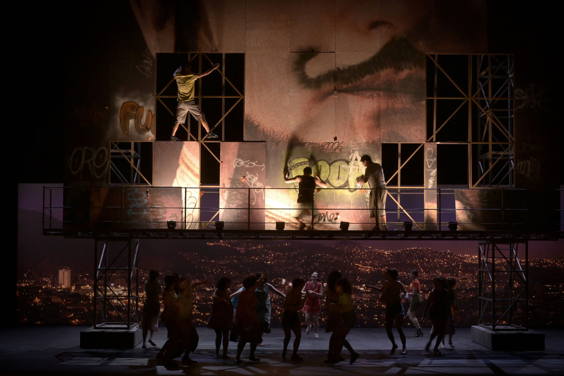 Pour le dernier tableau, le portrait de Don Andrès est décoré de graffiti, et installé sur un fond représentant le ciel étoilé au-dessus d’une vue nocturne urbaine.